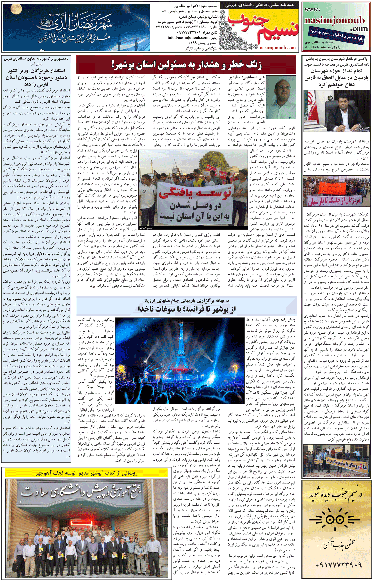 » هفته نامه نسیم جنوب شماره ۸۵۱ [بيش از 8 سال قبل]