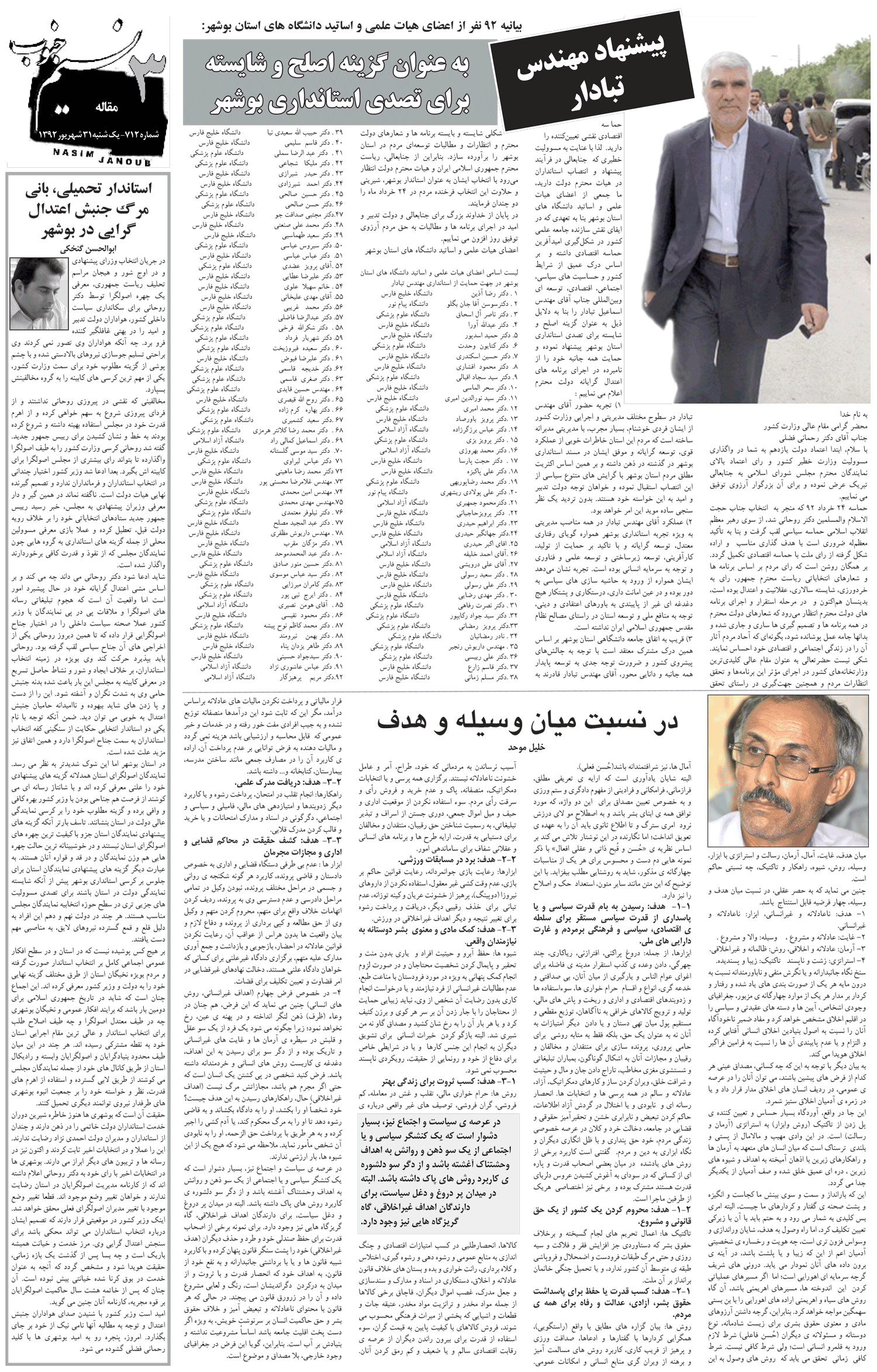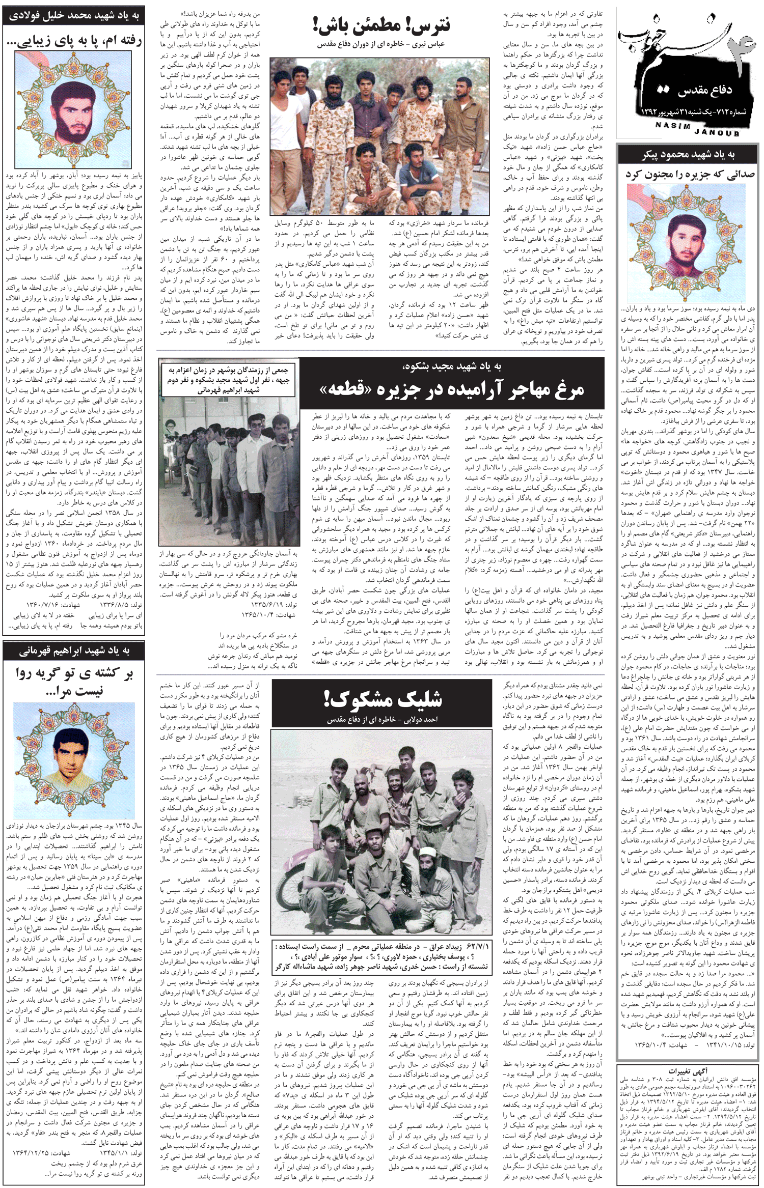 هفته نامه نسیم جنوب شماره 712